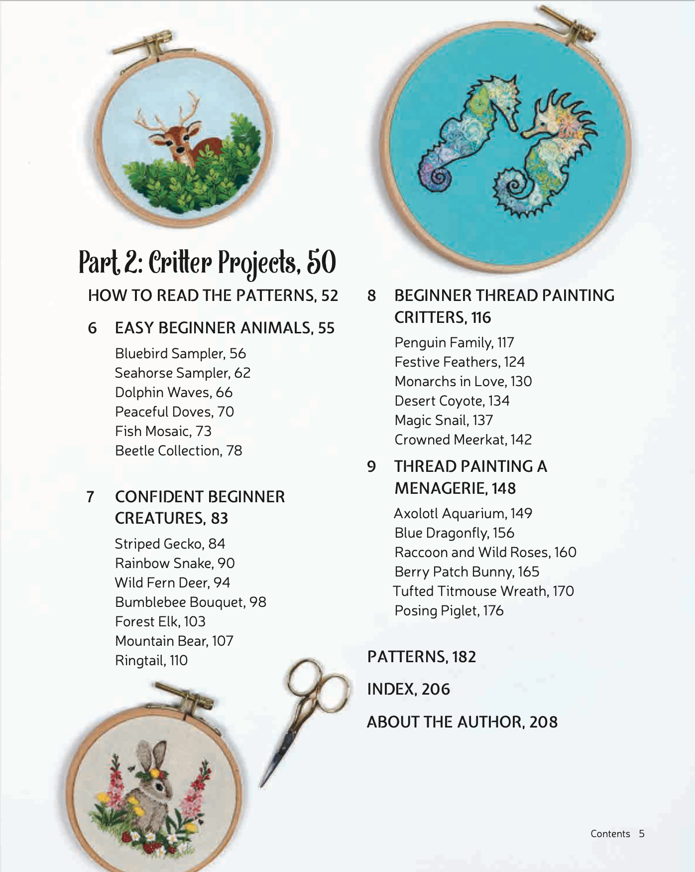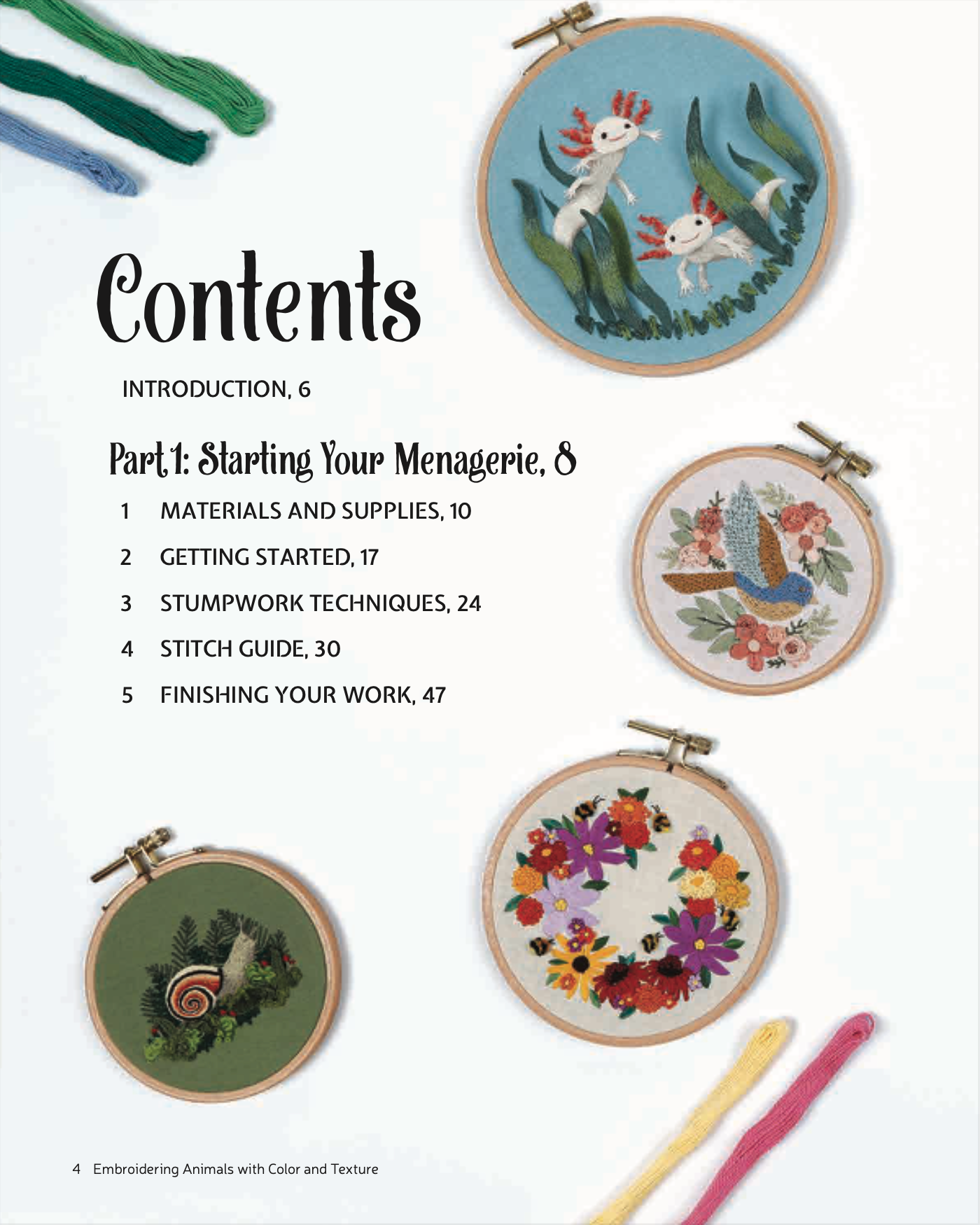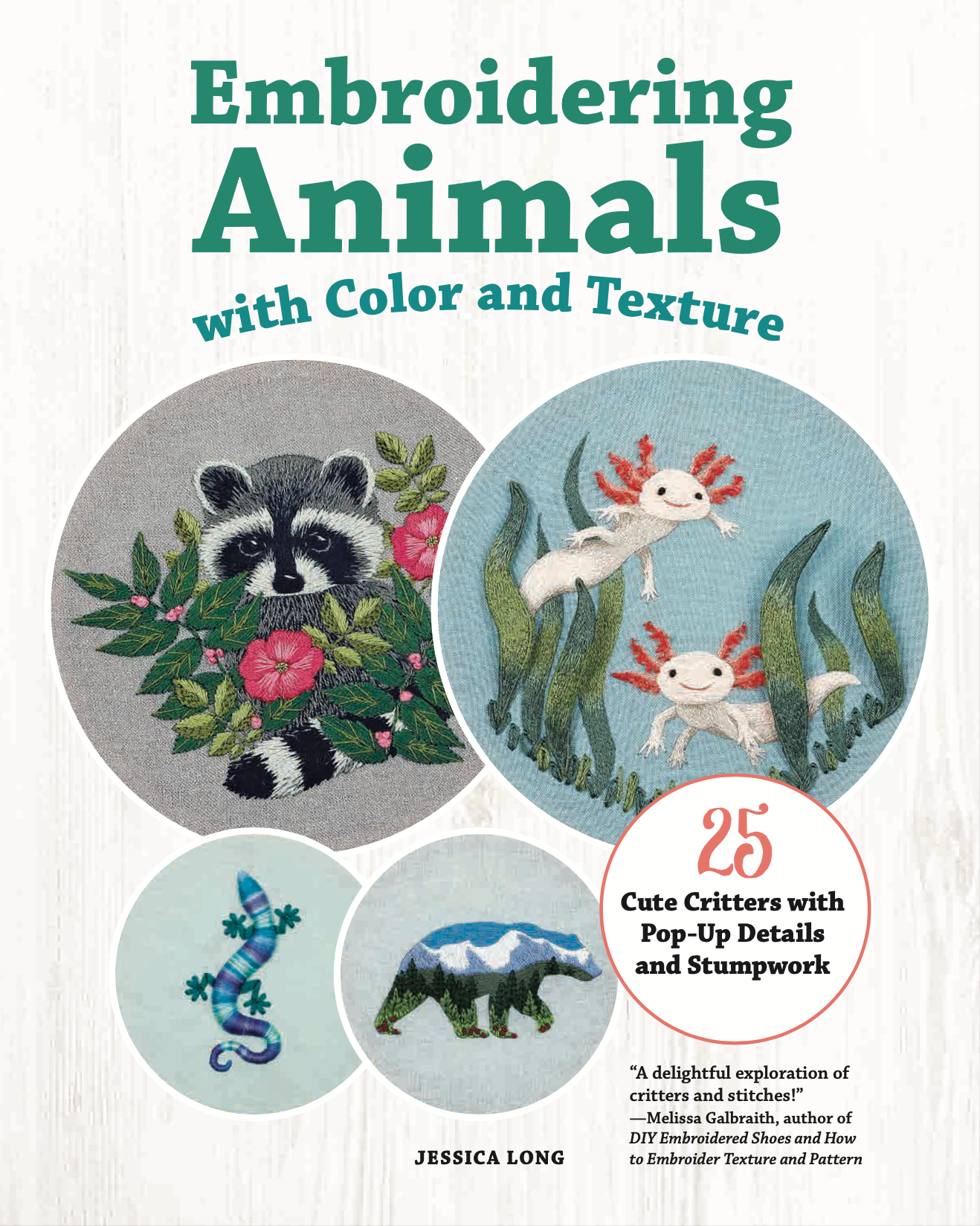 "Embroidering Animals with Color and Texture is a comprehensive introduction to embroidery, thread painting, and stumpwork, perfect for the embroidery novice wanting to gain confidence in their skills! Author Jessica Long offers expert advice, sharing tips and tricks to be successful as you take on your first project. In part one, you’ll discover everything you need to be prepared, like what materials and supplies you’ll need to succeed, stumpwork techniques, a quick-reference stitch guide, and how to finish your work. Then in part two, you’ll find 25 adorable animal projects! The project section is organized by level of difficulty, building skills until you’re pro. Step-by-step instructions are provided to easily guide you through each pattern, with high-quality images and diagrams to help you visualize your final piece. From a folksy bluebird to a fun fish mosaic, striped gecko, bumblebee bouquet, forest elk, and more—there are so many charming critters to create. Jessica Long encourages you to sit back, slow down, and relax as you embark on your embroidery journey!"