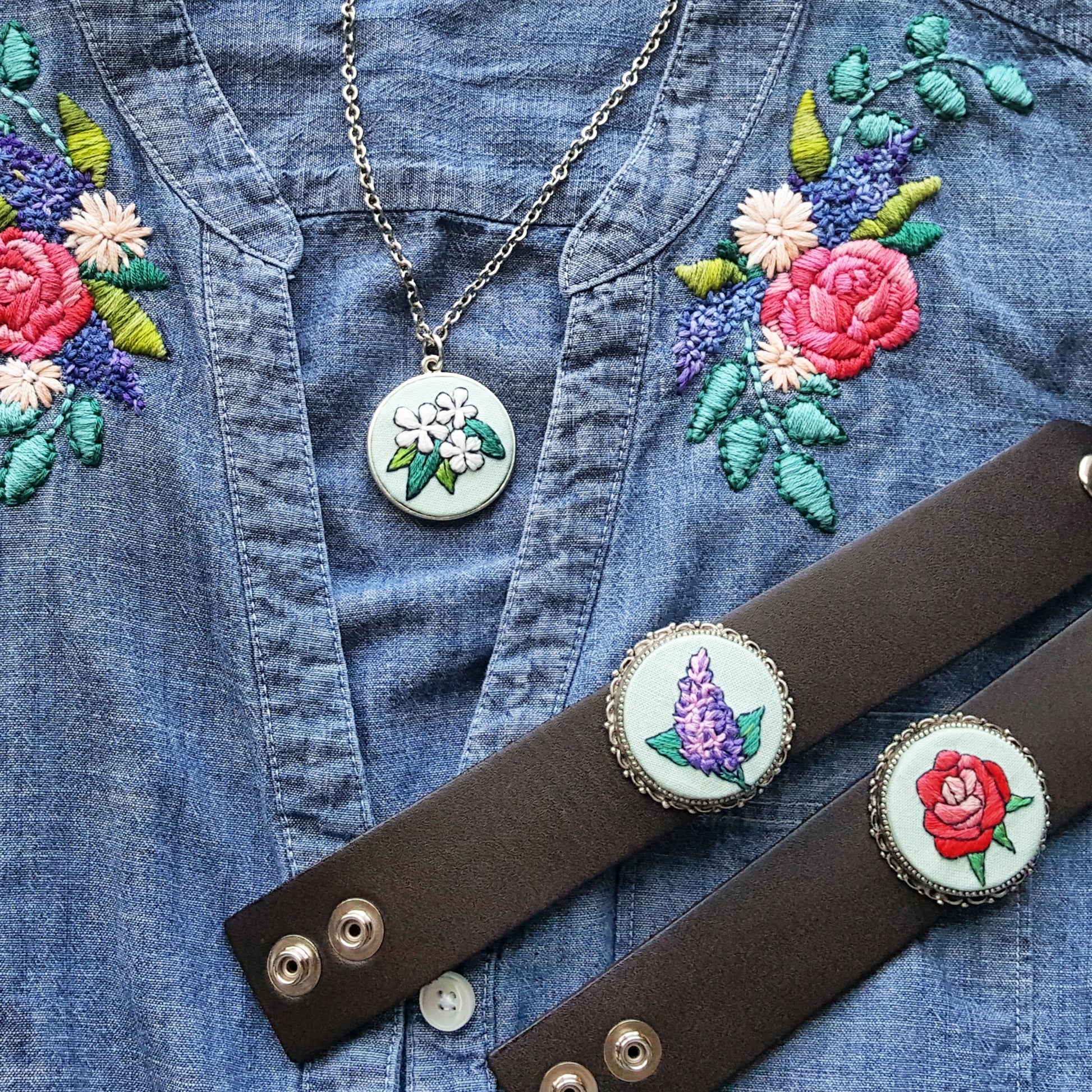 To find out more information about embroidered jewelry please go HERE to see how easy it is to turn your finished work into wearable art.