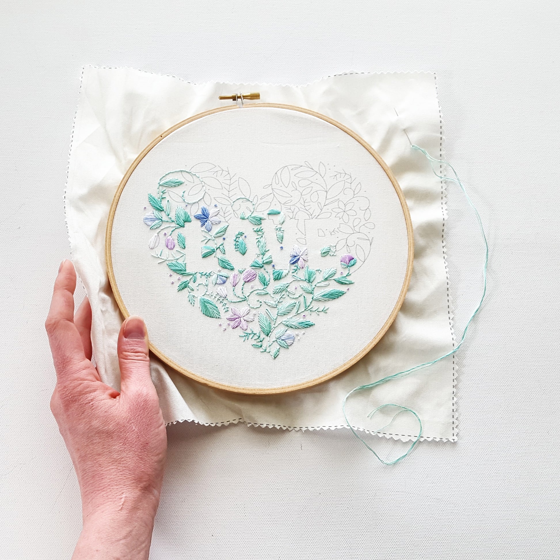 Your purchase includes the LOVE embroidery pattern and a copy of my beginner guide. The simple embroidery pattern includes the stitch and color key, a full color photo of stitched pattern, the design sized for a 6 inch hoop ready to trace for future projects (resize as needed), and the link for a mini tutorial on YouTube. Videos of all stitches are also available here.