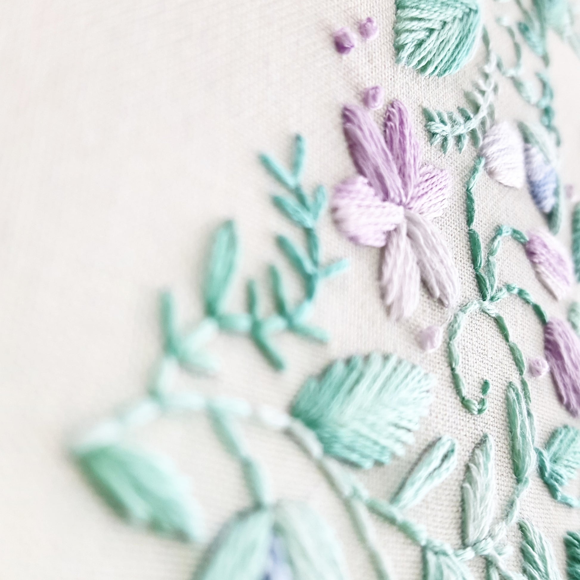 The beginner guide includes a supplies list with suggested products based off of my experience, tips on how to get started, including pattern transfer suggestions for future projects, plus diagrams of stitches. The beginner guide can also be found online here with helpful videos, plus you can find some additional tutorials here.