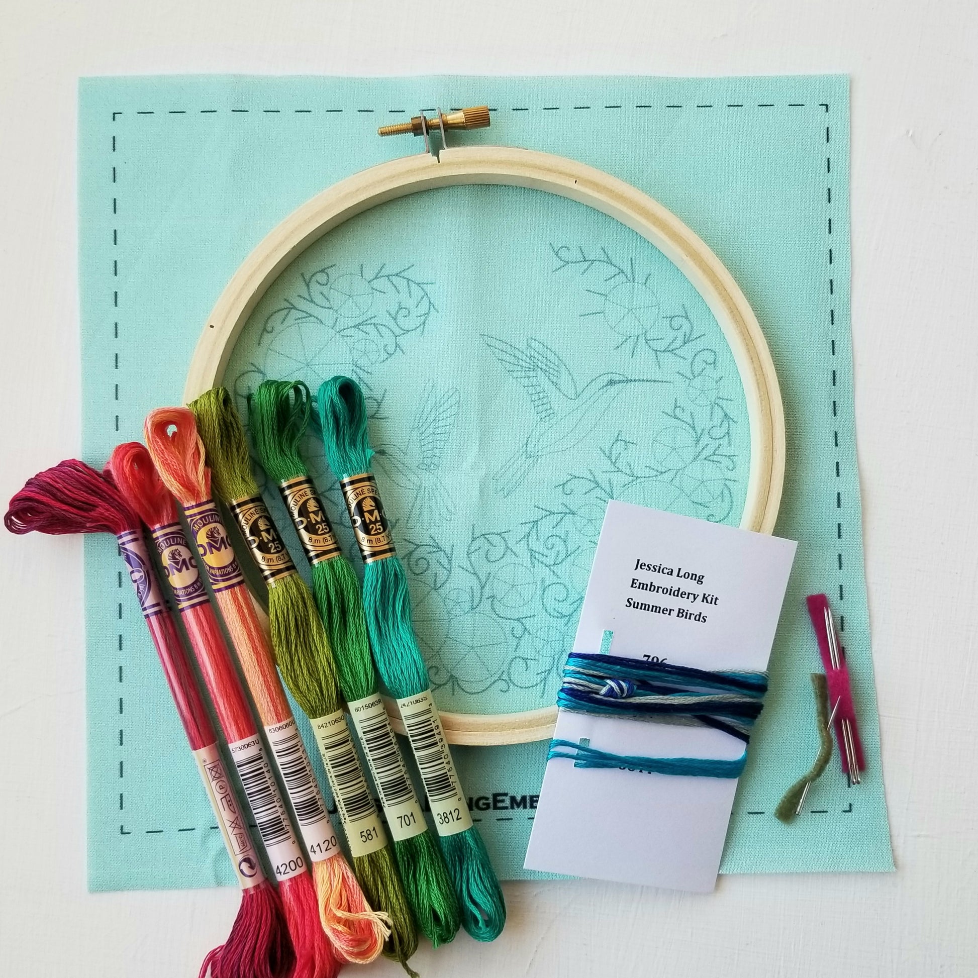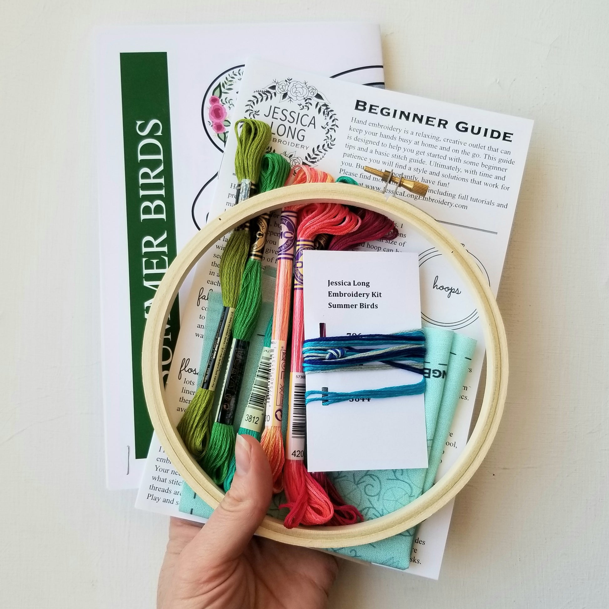 Your purchase includes the Summer Birds embroidery pattern and a copy of my beginner guide. The simple embroidery pattern includes a link to the video tutorial on YouTube, stitch and color keys, and a color close up photo of stitched pattern. We are happy to send you the pattern template (hard copy and/or PDF) to reuse for future projects. Include a note at check out or email Jessica@JessicaLongEmbroidery.com
