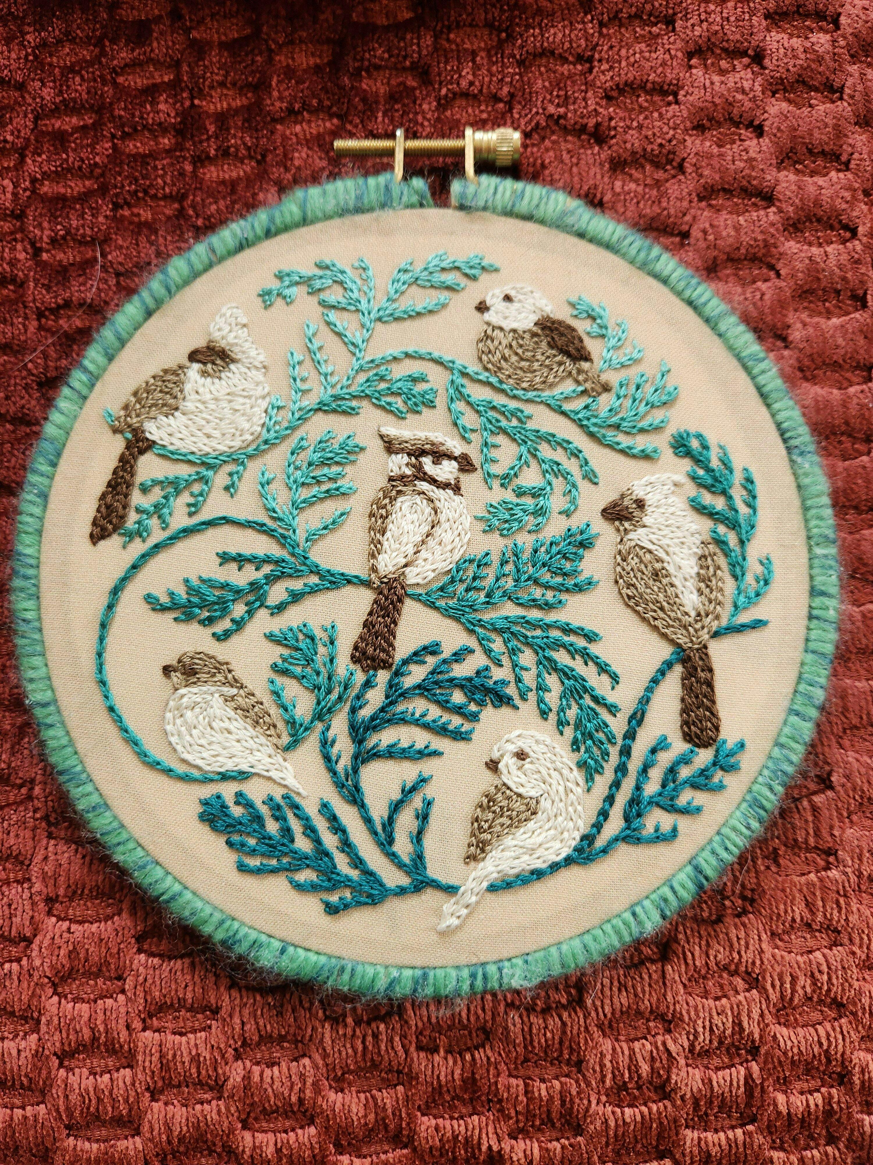 Your purchase includes the Winter Birds embroidery pattern and a copy of my beginner guide. The simple embroidery pattern includes a link to the video tutorial on YouTube, stitch and color keys, and a color close up photo of stitched pattern. We are happy to send you the pattern template (hard copy and/or PDF) to reuse for future projects. Include a note at check out or email Jessica@JessicaLongEmbroidery.com