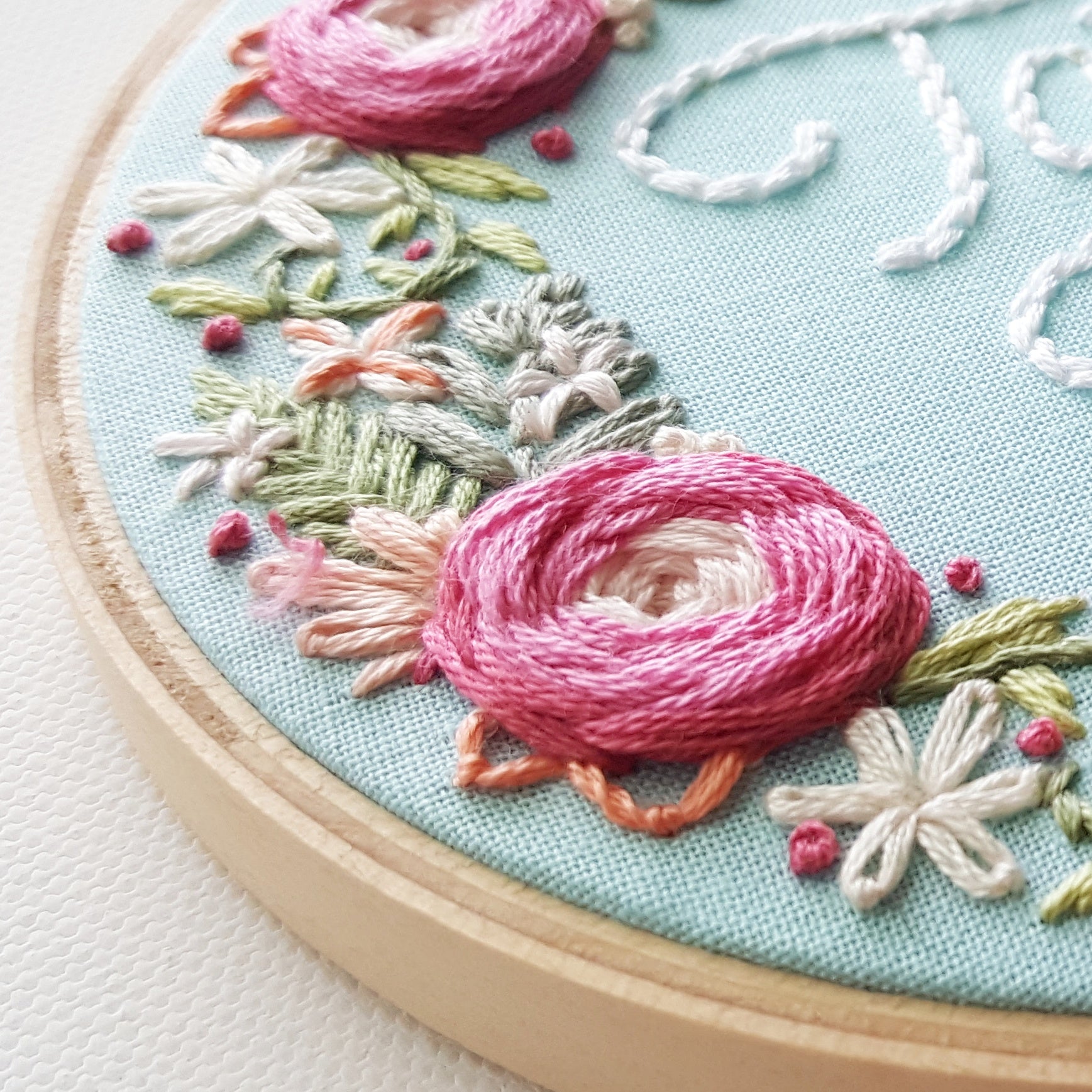 Your purchase includes the Woven Rose Border embroidery pattern and a copy of my beginner guide. The embroidery pattern includes a stitch and color key, suggested DMC embroidery floss colors, a full color close up photo of stitched pattern and the design sized for a 5 inch hoop and an 8 inch hoop ready to trace for future projects.