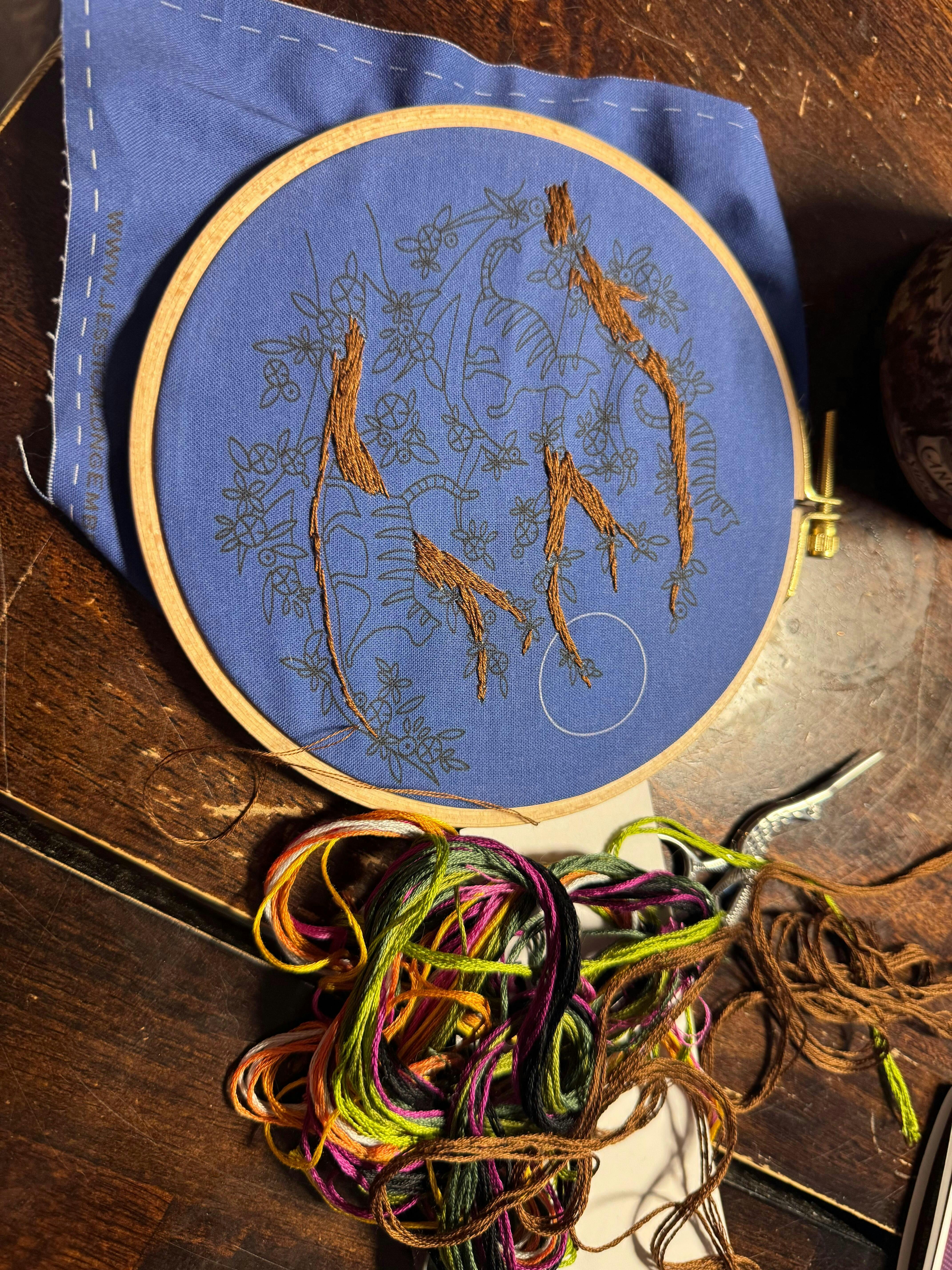 Your purchase includes the embroidery pattern and a copy of my beginner guide. The simple embroidery pattern includes a link to the video tutorial on YouTube, stitch and color keys, and a color close up photo of stitched pattern. We are happy to send you the pattern template (hard copy and/or PDF) to reuse for future projects. Include a note at check out or email Jessica@JessicaLongEmbroidery.com