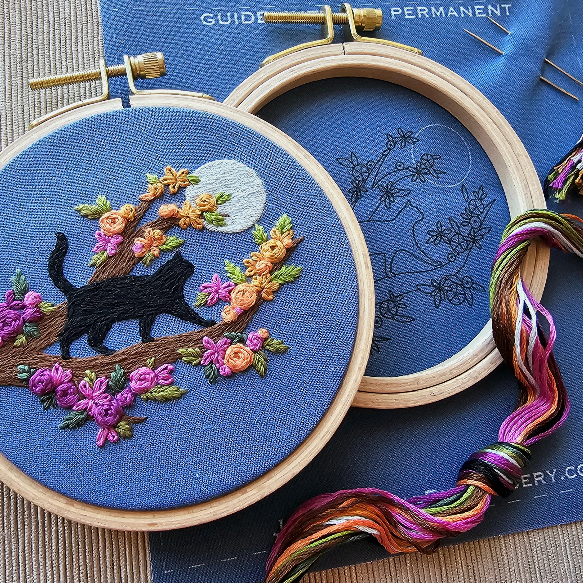 The beginner guide includes a supplies list with suggested products based off of my experience, tips on how to get started, including pattern transfer suggestions for future projects, plus diagrams of stitches. The beginner guide can also be found online here with helpful videos, plus you can find some additional tutorials here.
