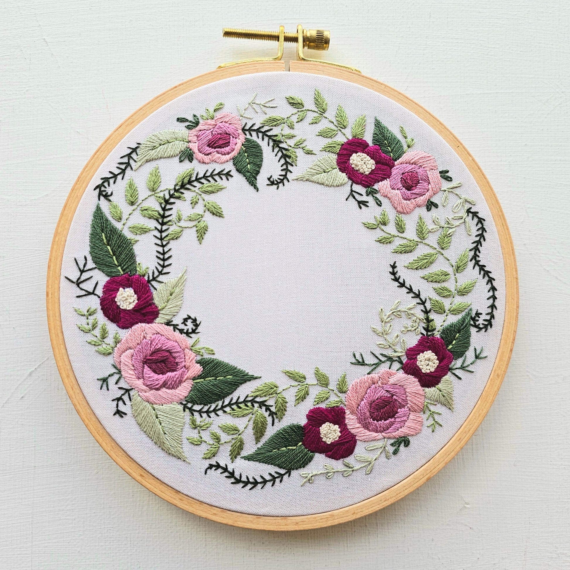 Enjoy this pretty project featuring romantic colors and sweet florals! You'll have an opportunity to practice basic hand embroidery stitches while creating a unique piece of embroidery art. Add your own text to the center of the design to customize your project.