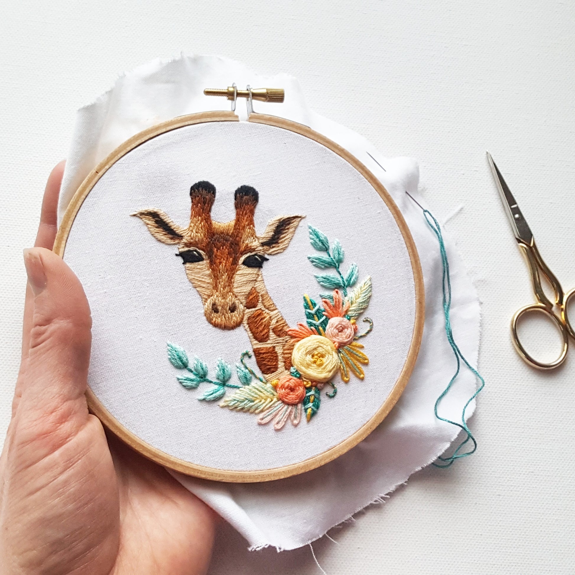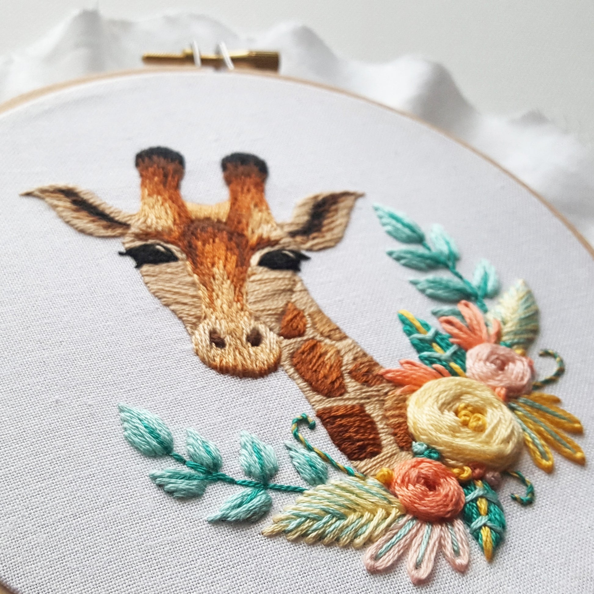 Do you just love giraffes and need one in your life? Or maybe this sweetie is the perfect addition for a nursery wall?  It really doesn't matter because giraffes are amazing and why not embroider one yourself, right? The stitches used in this design are easy to moderate in difficulty. The florals are easy but the giraffe itself has a little added complexity with the "thread painting" technique using long and short stitch. There is no video for this pattern but you may find it useful to check out some of my other thread painting videos on Youtube, like this one or this one if the technique is new to you.