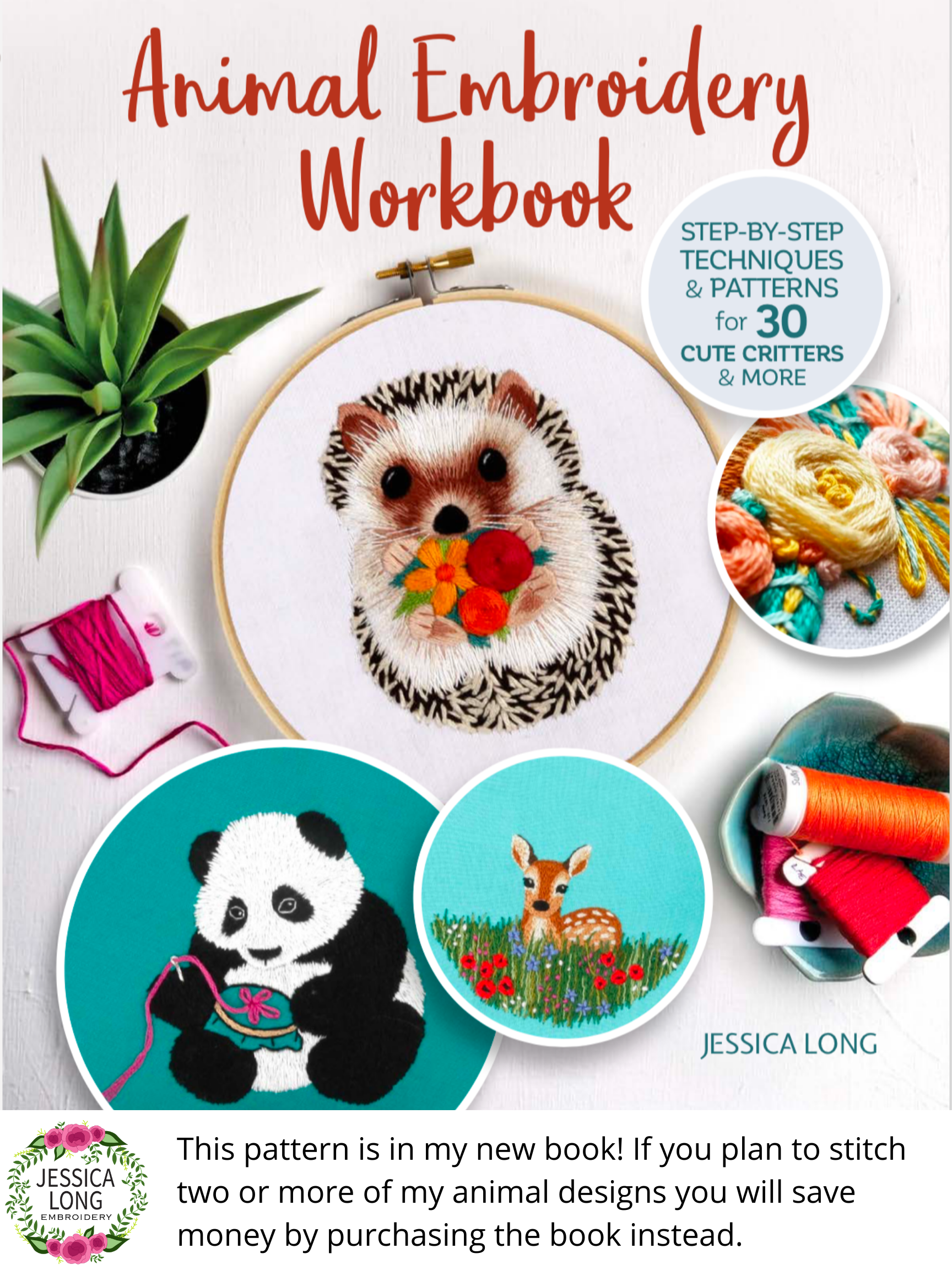 WAIT! This design is in my new book Animal Embroidery Workbook. If you think you may want to stitch two or more of my animal patterns you will actually save money if you purchase the book instead.