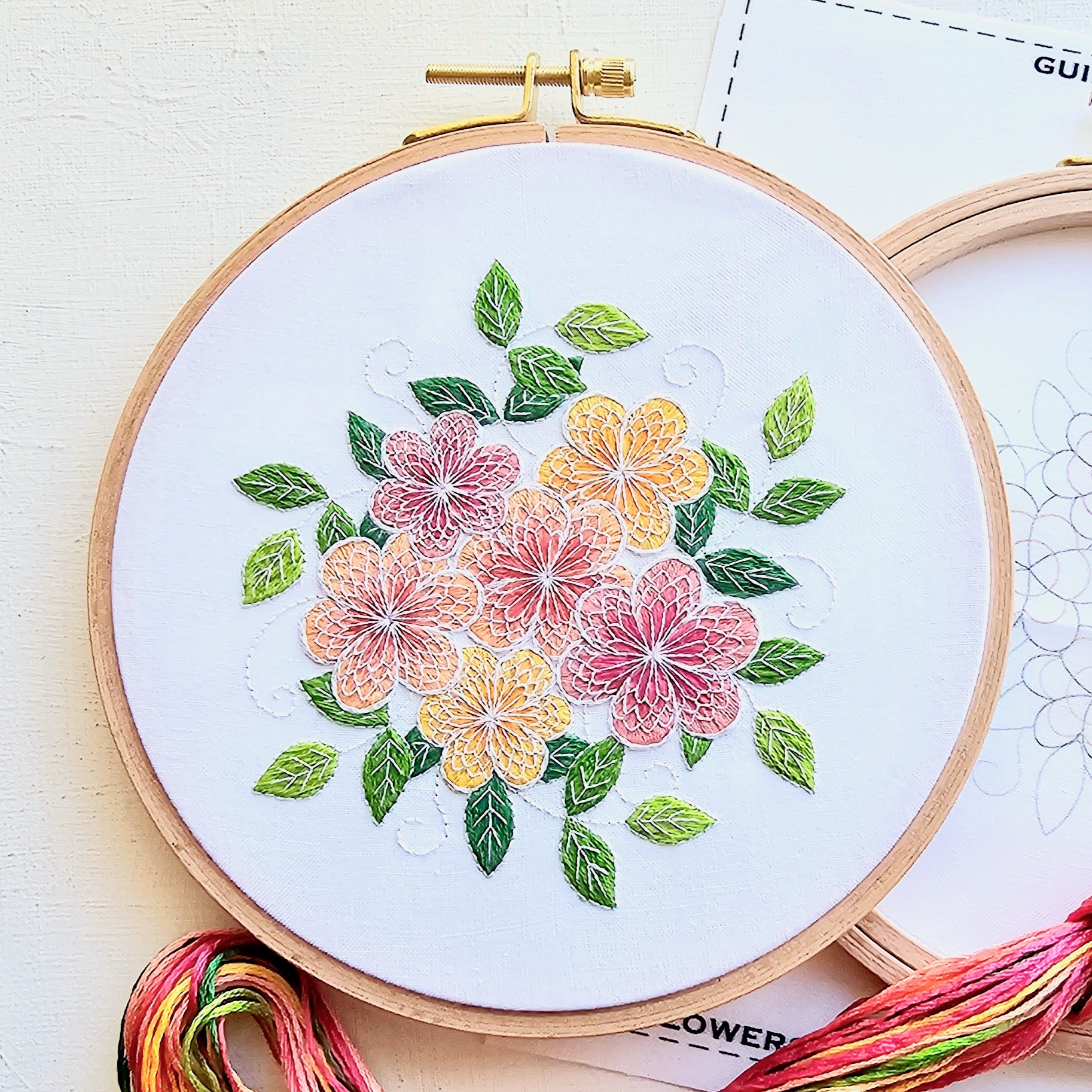 The beginner guide includes a supplies list with suggested products based off of my experience, tips on how to get started, including pattern transfer suggestions for future projects, plus diagrams of stitches. The beginner guide can also be found online here with helpful videos, plus you can find some additional tutorials here.