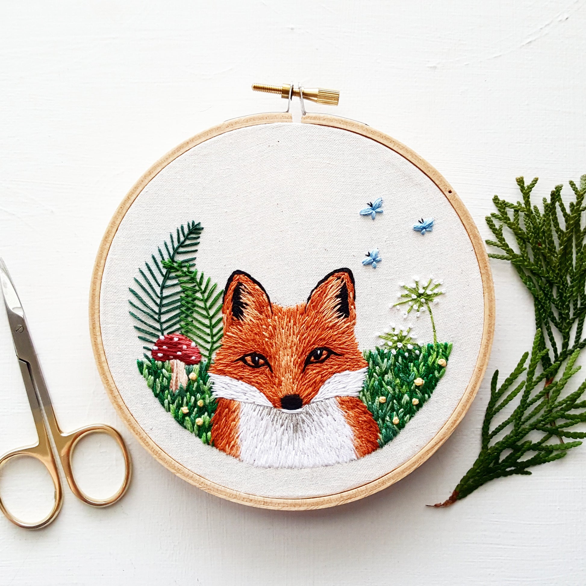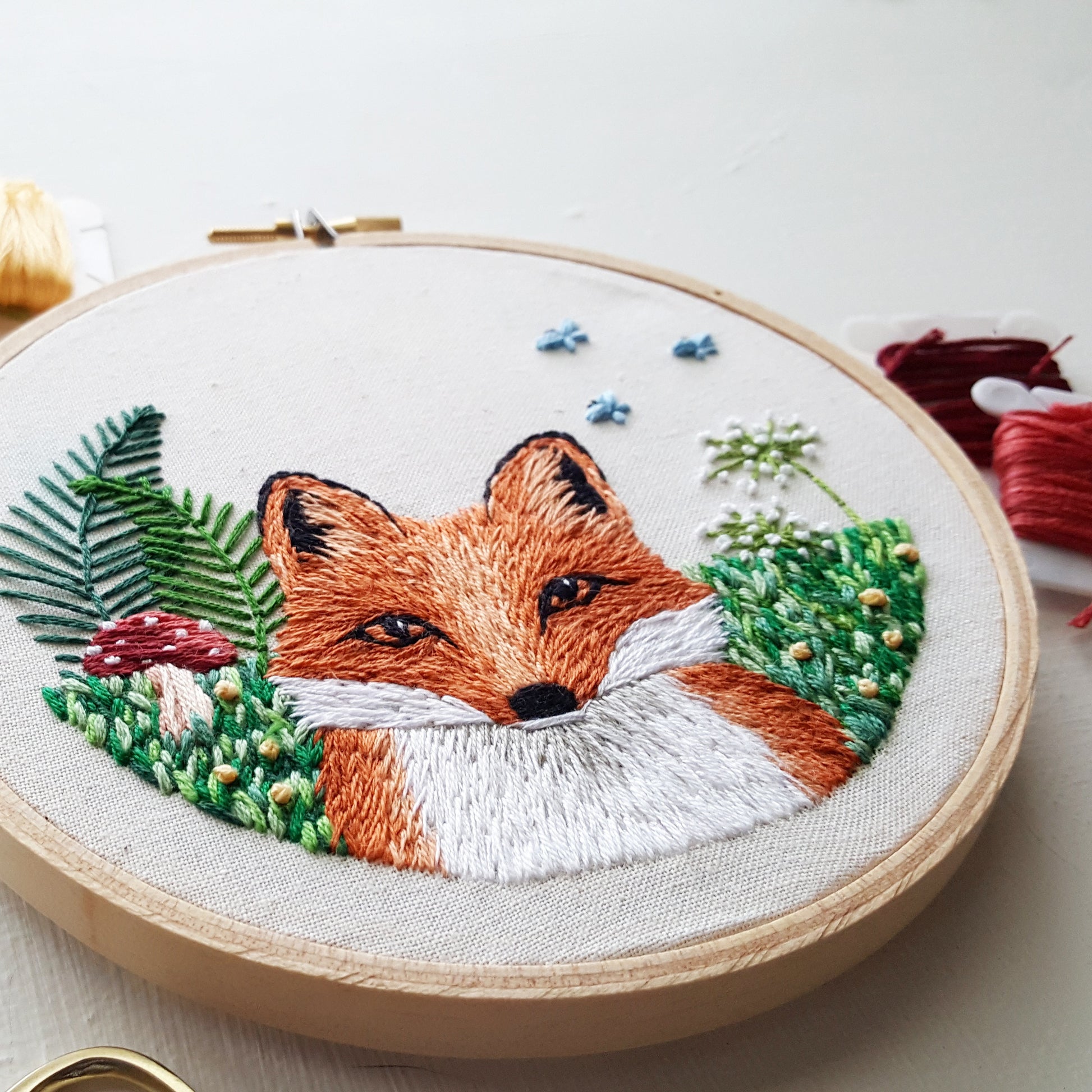 Your purchase includes the embroidery pattern and a copy of my beginner guide. The embroidery pattern and tutorial includes a stitch key with suggested DMC embroidery floss colors, a thread painting tutorial specific to this design, including step by step diagrams detailing stitch placement and direction for the little fox with full color close up photos of the stitched pattern at key intervals. And of course it includes design sized for a 5 inch hoop ready to print.